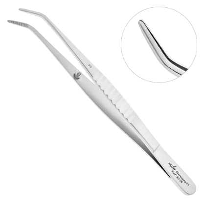 Хирургический пинцет J-16-034 от пакистанской фирмы Surgicon – универсальный инструмент, предназначенный для зажимания мягких тканей, удержания мелких предметов. Благодаря общей длине 200 мм позволяет работать в труднодоступных участках.